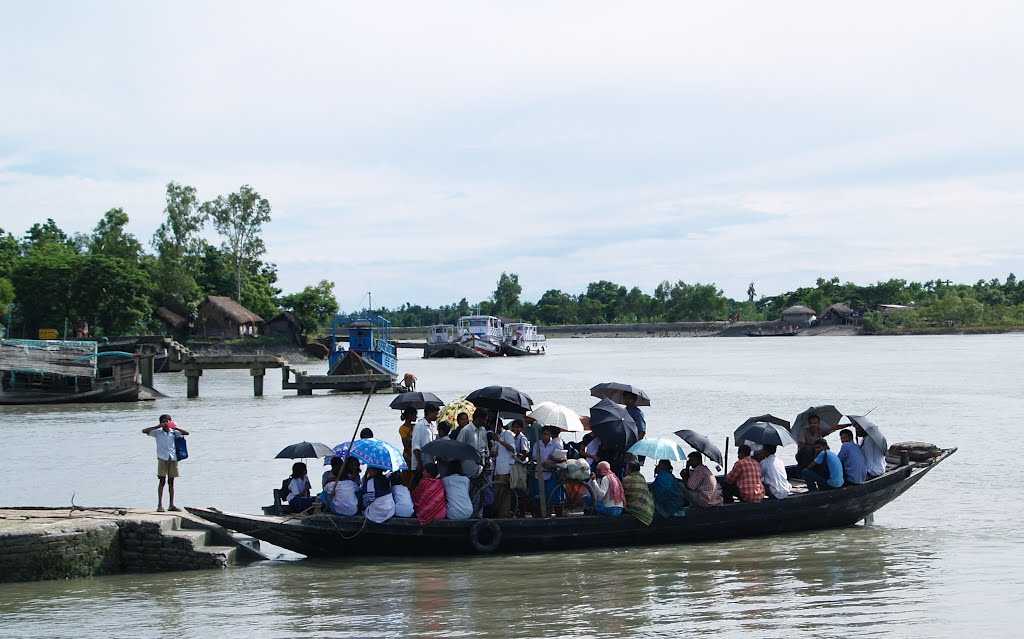 Ghoramara island lies 92 km south of Kolkata and spreads in a minuscule area of 5 km. This island was also once populated with a huge number of local families but now faces complete submergence in water due to erosion and rise in sea water levels. Nonetheless, it is still inhabited by a population of 3,000 people.rd, Herons, Short Toed Eagle, Sandpipers, Whimbrels, Spoonbills, Stilts, Thick Knees, Green Shanks, Curlew, Osprey, Shikara, Brahminy Kite, Osprey, and Crested Serpent Eagle. Other species of birds include Green Pigeon, Cormorants, Seagulls, Egrets, Cuckoos, Sunbirds, Ducks, Geese, and Storks. It's also known as Kingfisher's Paradise because of the presence of 10 out 12 species of Kingfisher in the region. Fishes: Numerous rivers and creeks wind through the forests of Sundarban, and an abundance of fish and crustaceans is found in the flowing waters. Peripthalmus and Bolethalmus are amphibious fish species, most frequently seen swimming near mud banks and jetties. These rivers are also home to some endangered species such as Ganges Shark, Pondicherry Shark, and Shovel Nosed White Guitarfish. Indian Dog Sharks, Hammer Headed Sharks, Pale Edged Sting Rays, Bull Sharks, Black Tip Sharks, Pale Edged Sting Rays, and Black Edged Sting Rays are also found here in waters of Sundarban. Hilsa, Bhetki, Pomphret, Parshey, Gurjali, Topshey are other fish varieties commonly found here. Among the crab species, Ghost Crab and Fiddler Crabs are common inhabitants of these waters along with two primitive species of crabs known as Horseshoe Crab (Tachepleursgygus and Carcinoscropius rotundicauda). Tiger Prawns are also abundant and serve as a source of livelihood for the locals because of huge demand in the export market.